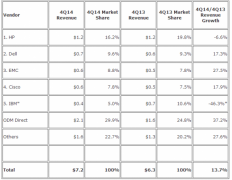 根據IDC的(de)全球雲IT基礎設施季度追蹤報(bào)告稱,雲IT基礎設施整體(tǐ)開(kāi)支(服務器(qì)、磁盤存儲和(hé)以太網交換機(jī®))在2014年(nián)(4Q14)第四季度同比增長(cháng)14.4%達到(dào)80億美(mě'i)元,占到(dào)所有(yǒu)基礎設施開(kāi)支的(de)近(jìn)30%,高(gāo)于去(qù)年(nián)同期的(de)27%。私有(yǒu)雲基礎設施開(kāi)支同比增長(cγháng)18.3%達到(dào)29億美(měi)元,... [2015-05-11]